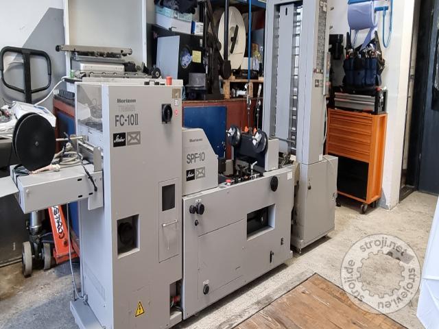 Stroj za izdelavo brošur: Horizon MC- 8, 8 vertikalnih vlagalnih postaj, SPF 10 enota za spenjanje in zgibanje, FC- 10 II nož in izlaganje. Prosto takoj v Hočah.